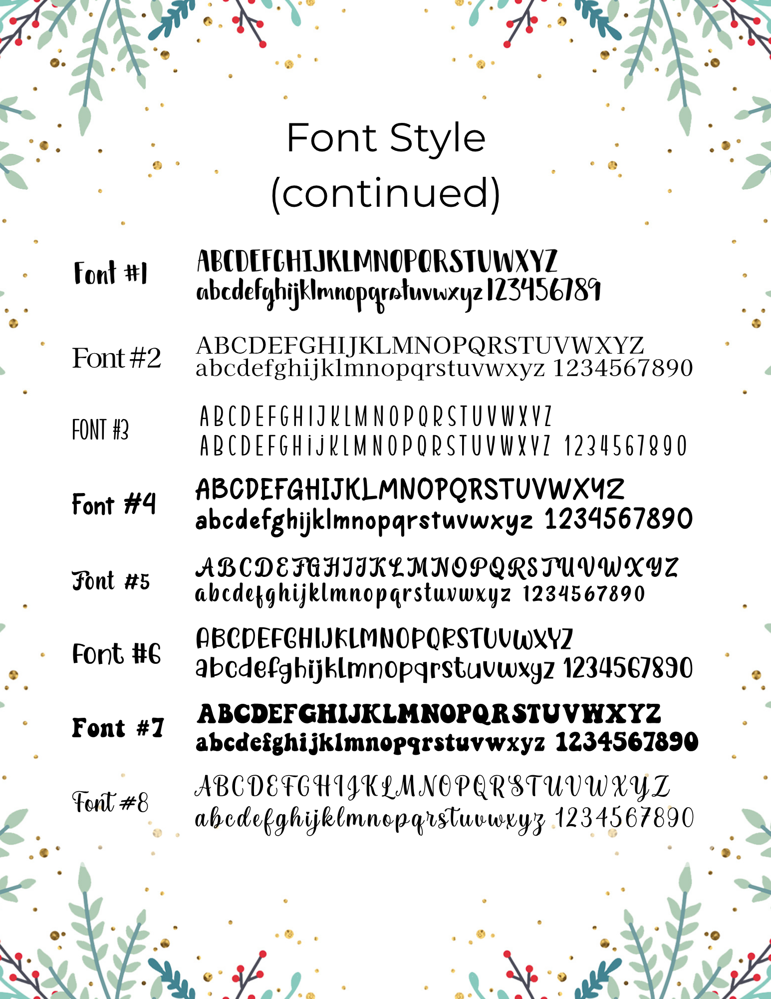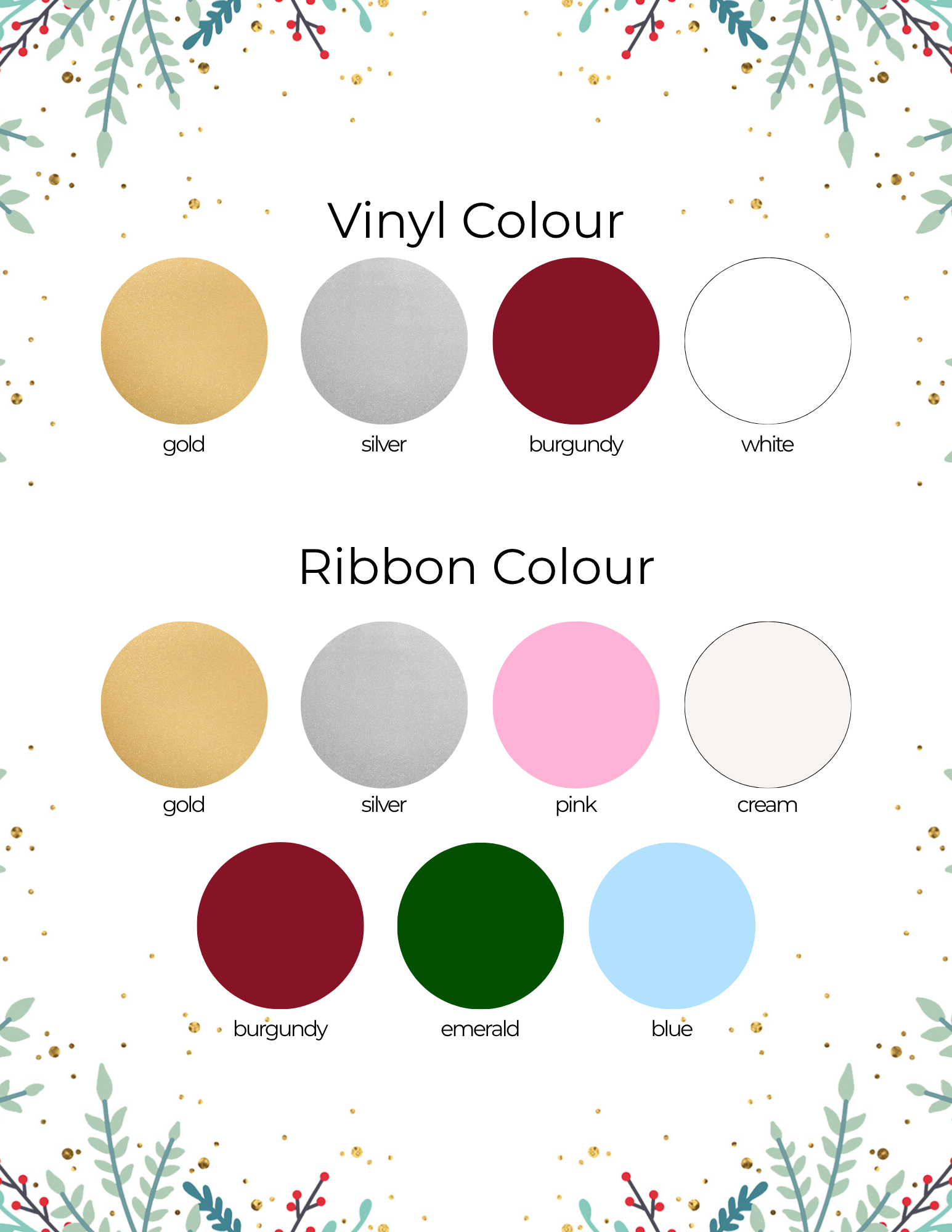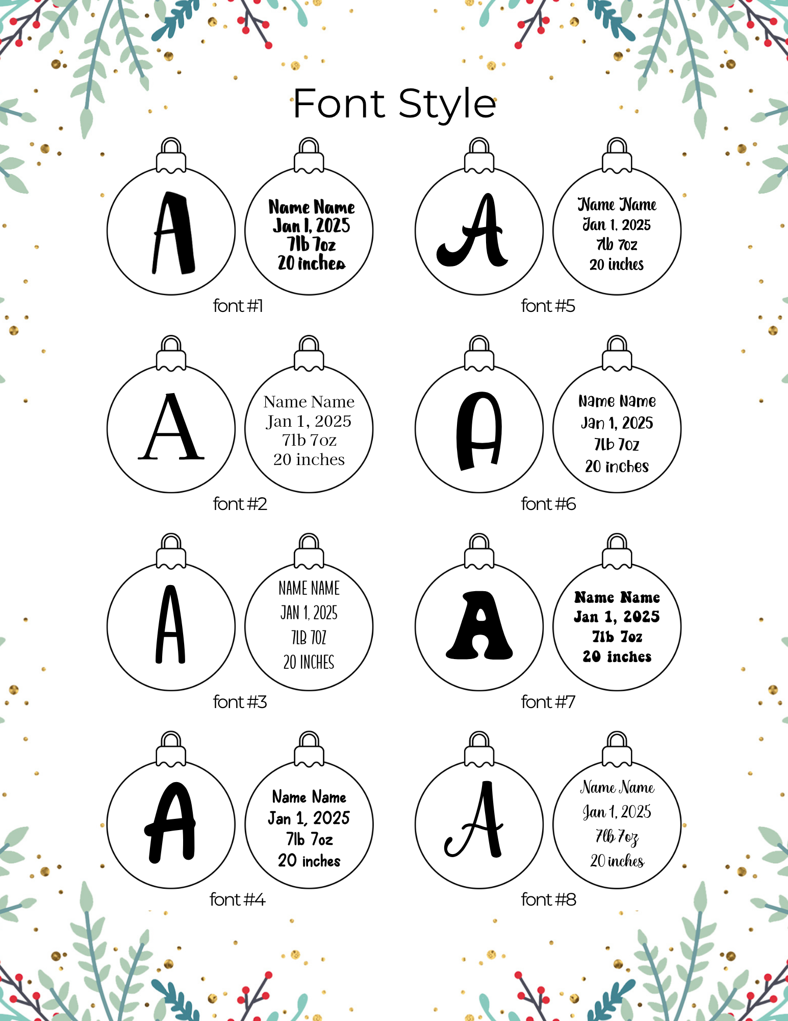 Personalize your colors and information for the front and back of the ornament. See pictures for colour options, can mix/match any combination, while supplies last.