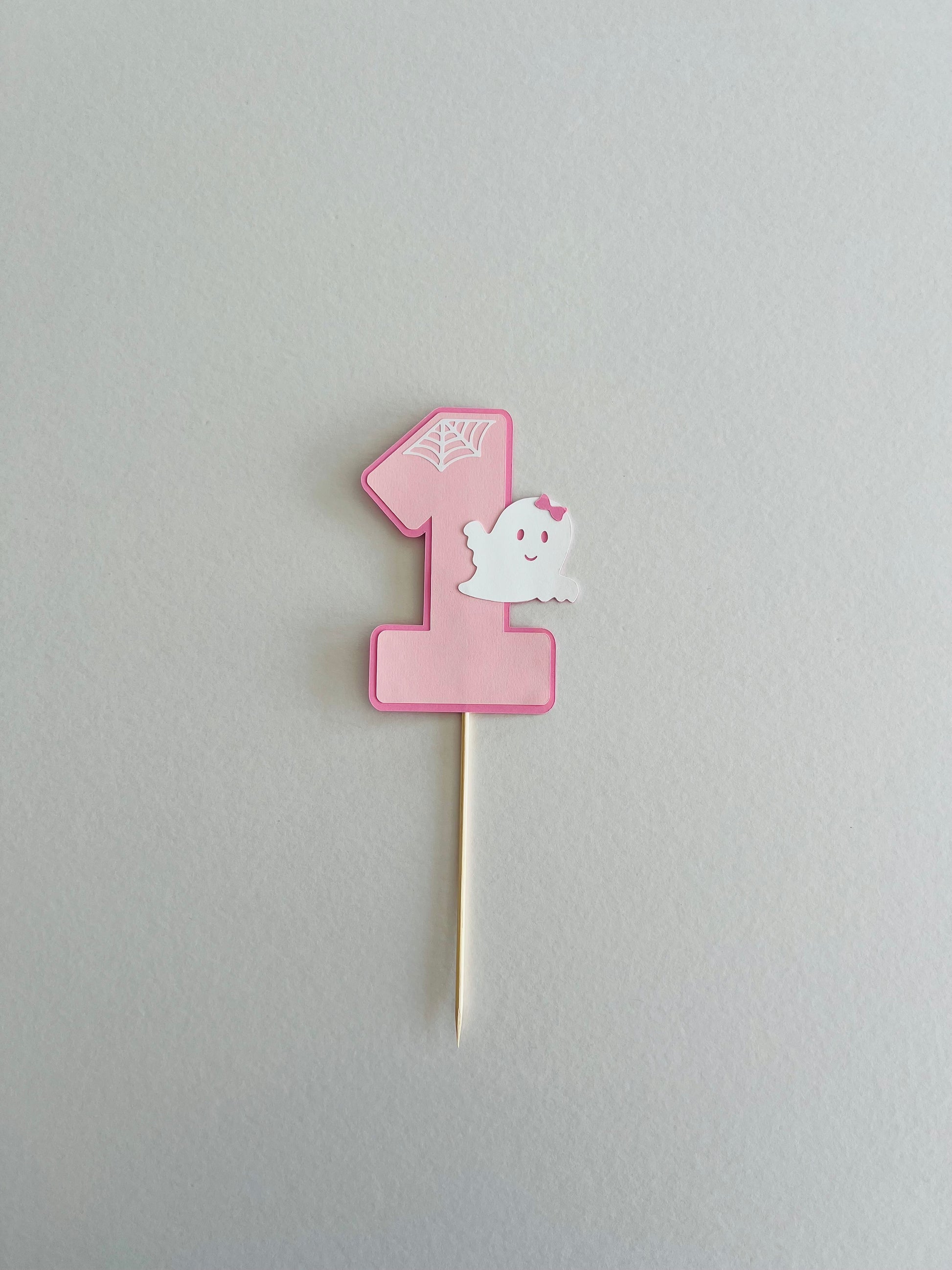 Add a touch of spookiness to your little one's first birthday cake with our Spooky One Number cake topper. This cute decoration features a playful ghost design, perfect for a ghost-themed celebration. Celebrate a special milestone with a touch of fun!